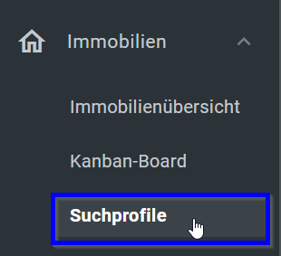 1. Öffnen Sie bitte das Menü Immobilien > Suchprofile