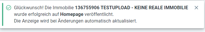 1. Öffnen Sie die gewünschte Immobilie und wechseln in den Reiter "Veröffentlichung" und klicken bei dem entsprechenden Portal auf den Schalter. Die Übertragung wird gestartet.