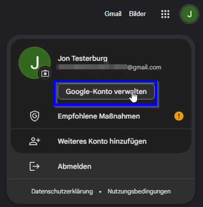 2. Klicken Sie anschließend auf Google-Konto verwalten