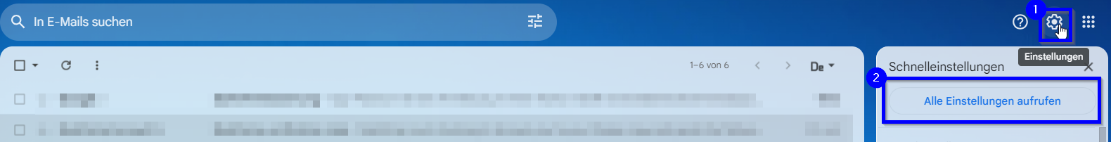 1. Öffnen Sie Ihr Gmail-Postfach und klicken Sie auf das Zahnradsymbol und anschließend auf Alle Einstellungen abrufen