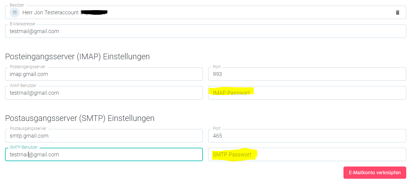 WICHTIG: Damit generell ein Abruf via IMAP möglich ist, muss auch in den Einstellungen des Mailkontos der IMAP-Zugriff aktiviert sein.