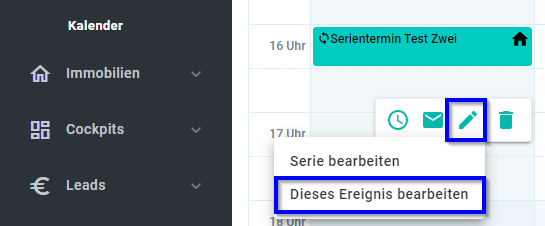 - Einen einzelnen Termin der Serie bearbeiten